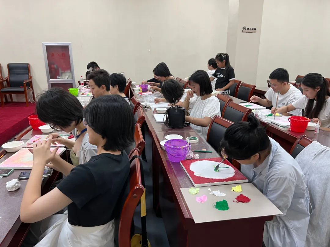 活动现场氛围热烈,画作上线条流畅生动、色彩五彩缤纷,大家都专注在自己的创作当中,经过不断地尝试和调整,和周围的小伙伴沟通、相互协作之后,一幅幅别出心裁、惟妙惟肖的肌理画作“大功告成”。