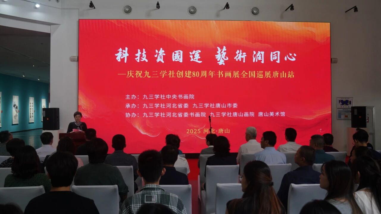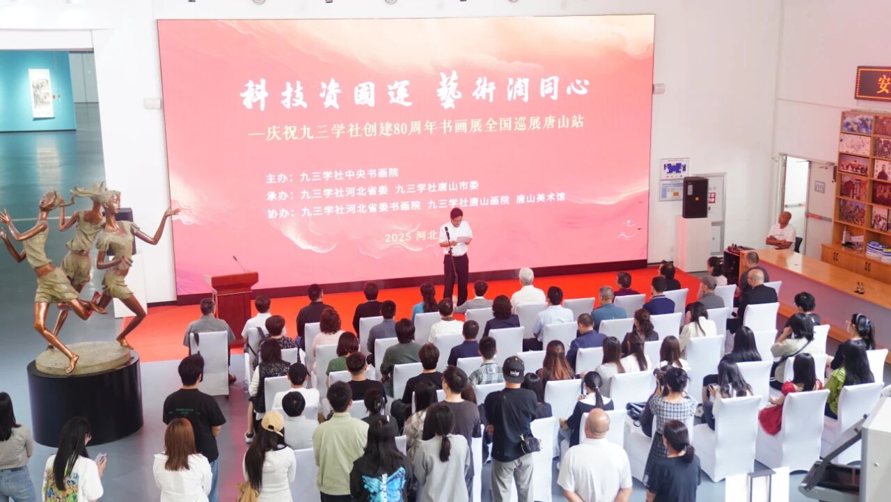9月17日,由九三学社中央书画院主办,九三学社河北省委、九三学社唐山市委承办,九三学社河北省委书画院、九三学社唐山画院、唐山美术馆(唐山画院)协办的“科技资国运 艺术润同心”主题书画巡展(唐山站)正式拉开帷幕。此次展览以九三学社成立八十周年为契机,通过笔墨丹青回望九三学社奋斗历程,彰显九三学社“爱国、民主、科学”的立社之本,为广大观众呈现一场兼具思想深度与艺术魅力的文化盛宴。