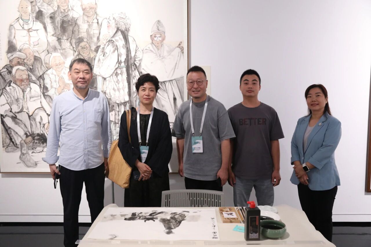 创作现场 中国国家画院党委副书记、纪委书记王青云、郑州市文化广电和旅游局副局长李春梅、郑州画院院长罗鸣与唐山画院一行合影