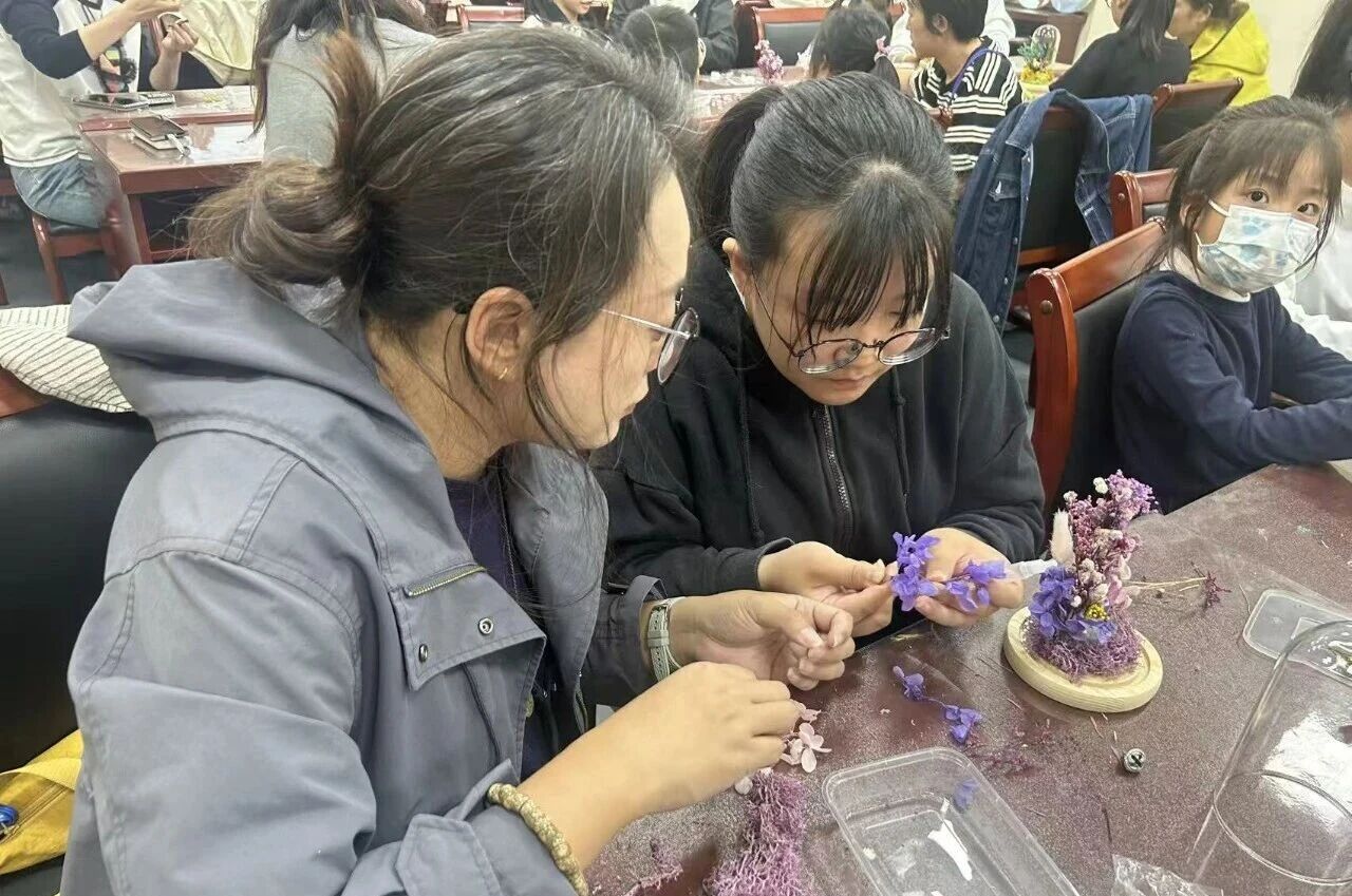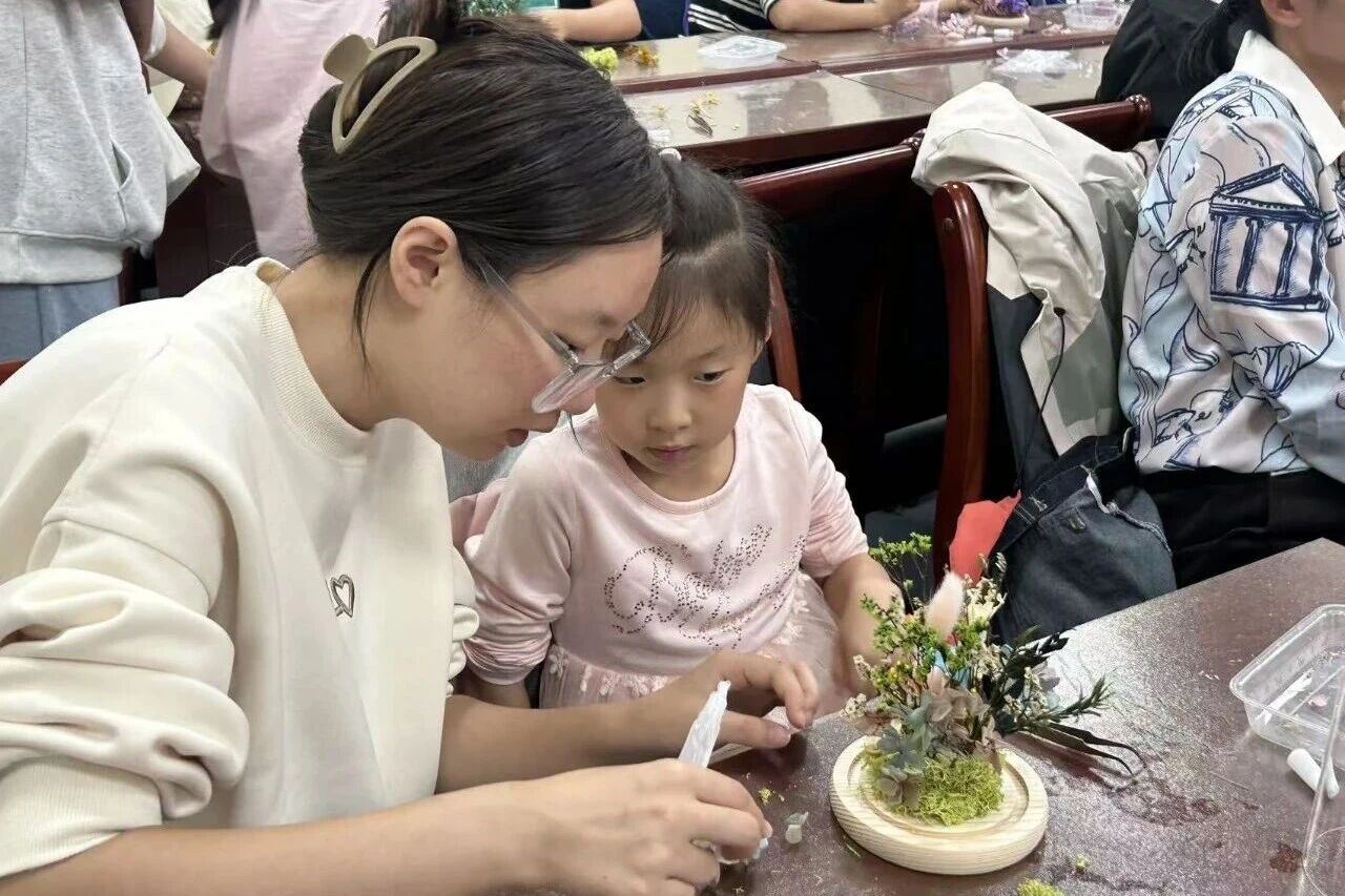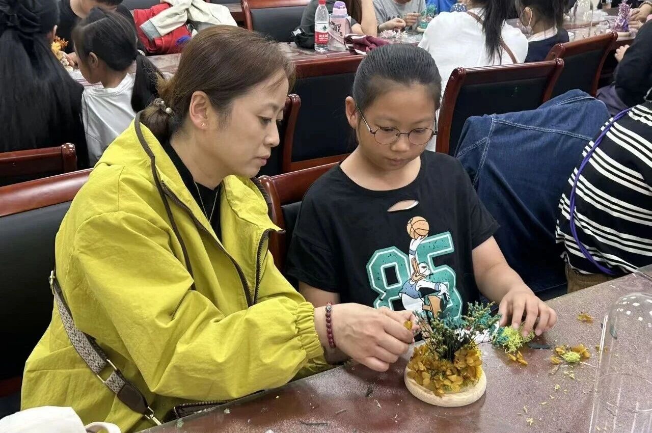 创作中家长与孩子默契配合,在温馨的互动中共同感受美、创造美,一件件独一无二的永生花作品,不仅留住了花朵最美的姿态,更寄托了孩子们对于传统佳节最纯真的理解。