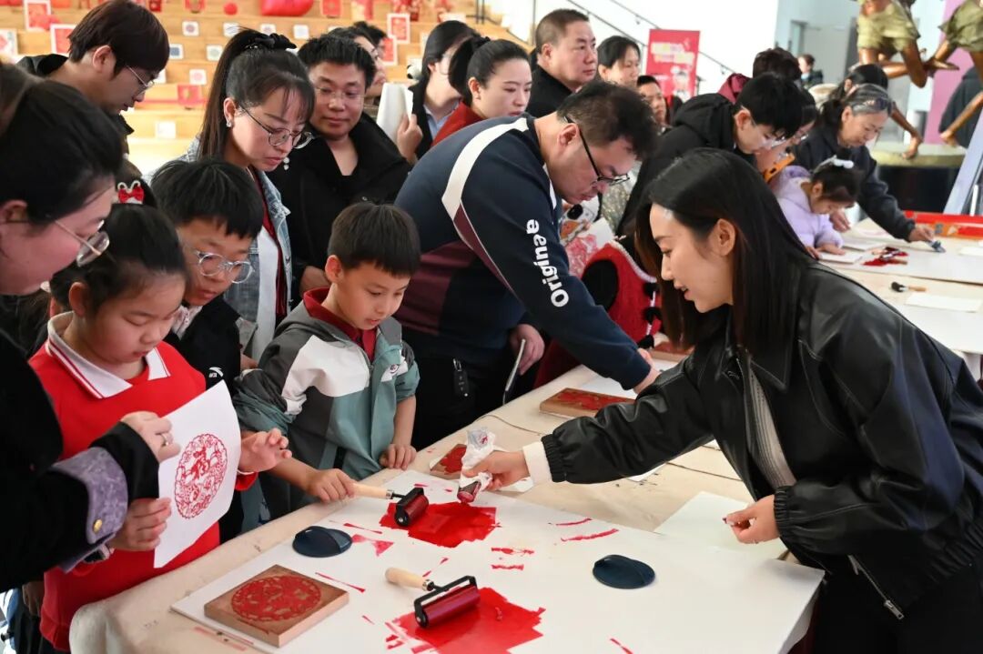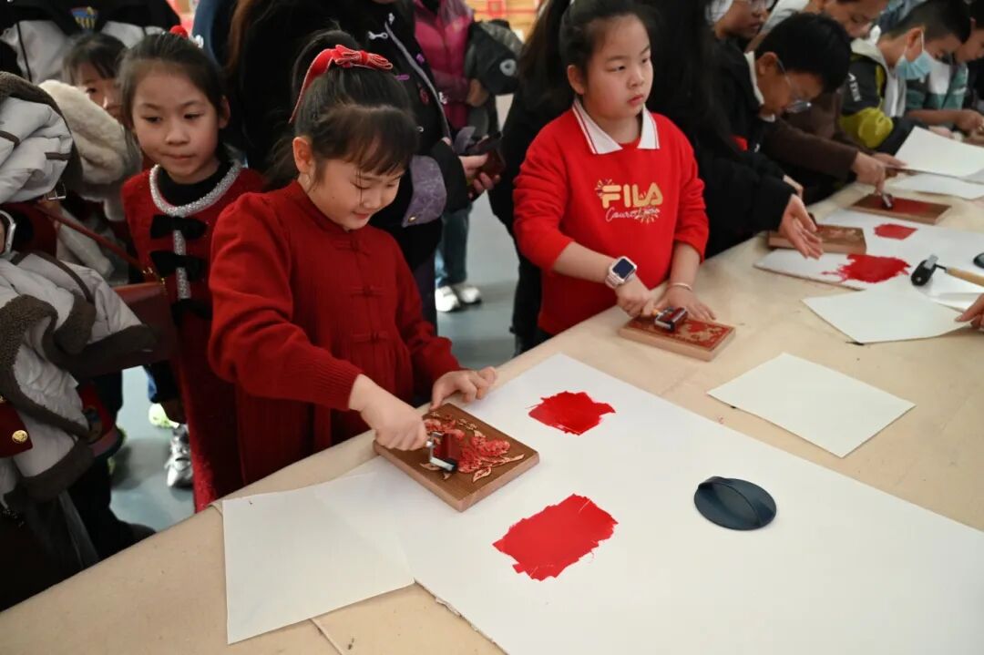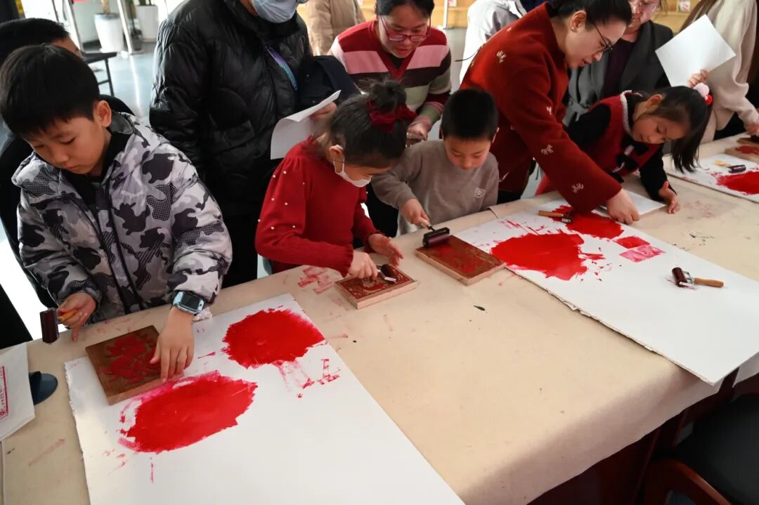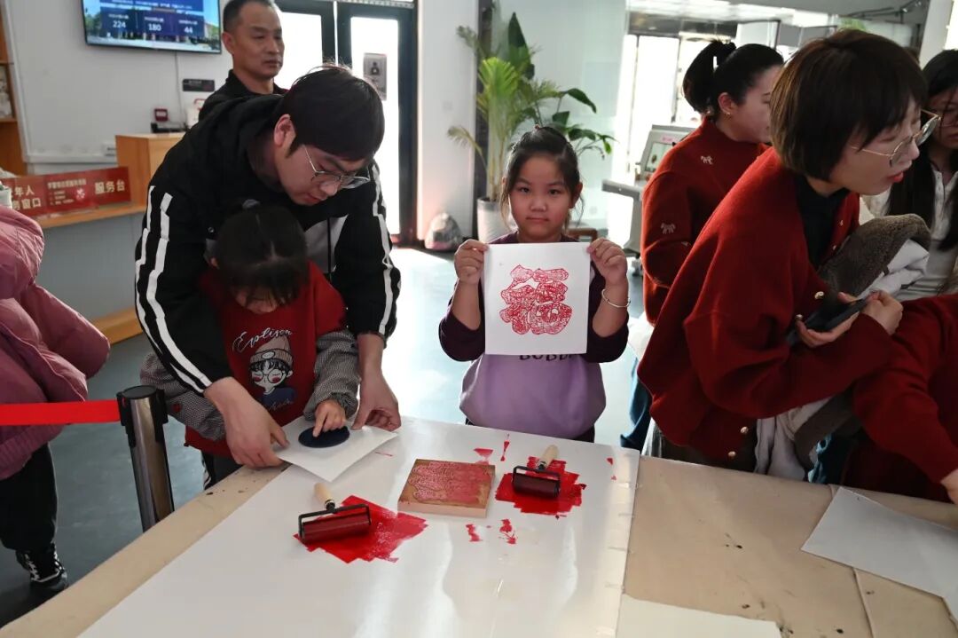 不同年龄段的参与者齐聚一堂,沉浸式体验调墨、滚墨、覆纸、磨印、揭纸的完整木板拓印工序,在一招一式间探索拓印乐趣,体验传统技艺的匠心传承,用亲手制作的马年主题作品寄托新春祝福。